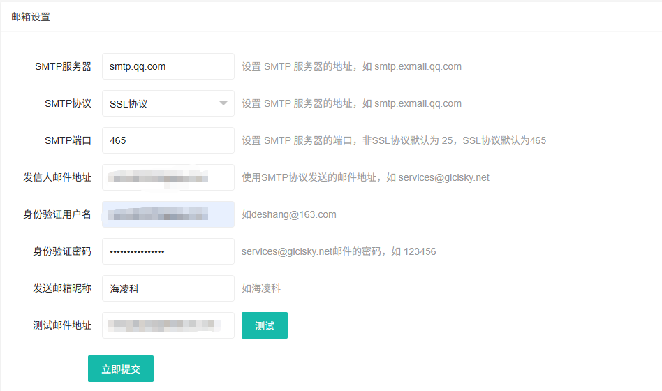 1.SMTP服务器:smtp.qq.com,这边值演示了qq的服务器,如果是其他邮箱需要自己去网上搜索一下