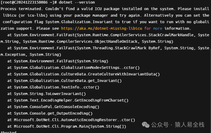 然后再运行dotnet --version命令查看,这个时候有可能会下面错误。
